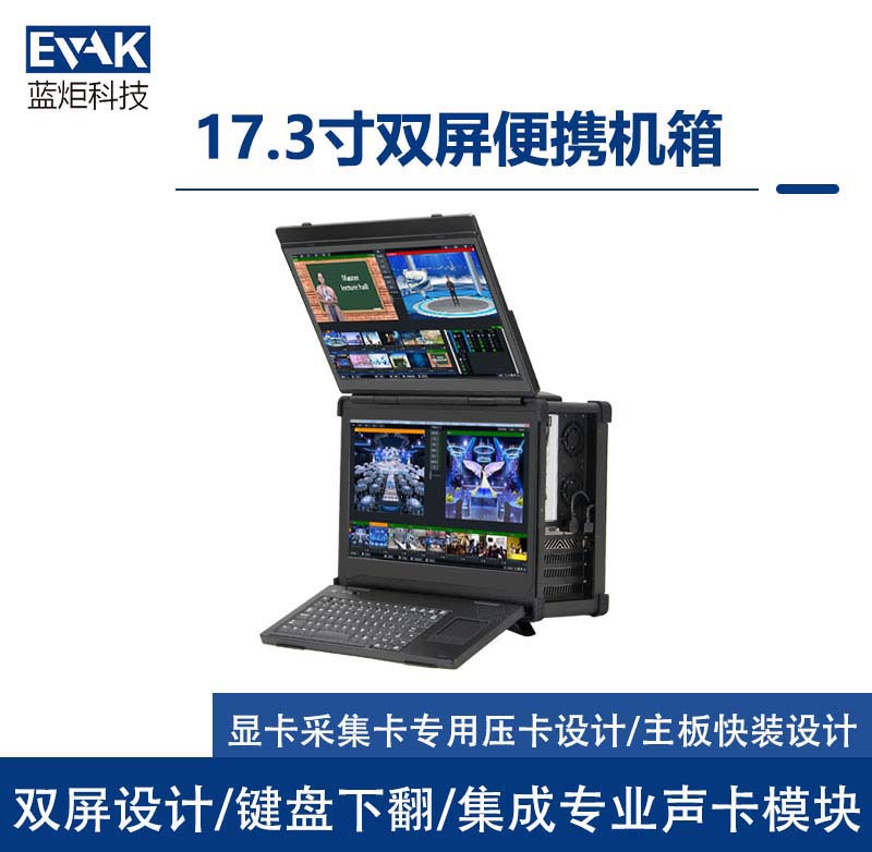 ● 雙屏設(shè)計(jì),主屏、副屏均為17.3寸全高清液晶屏,方便客戶使用。